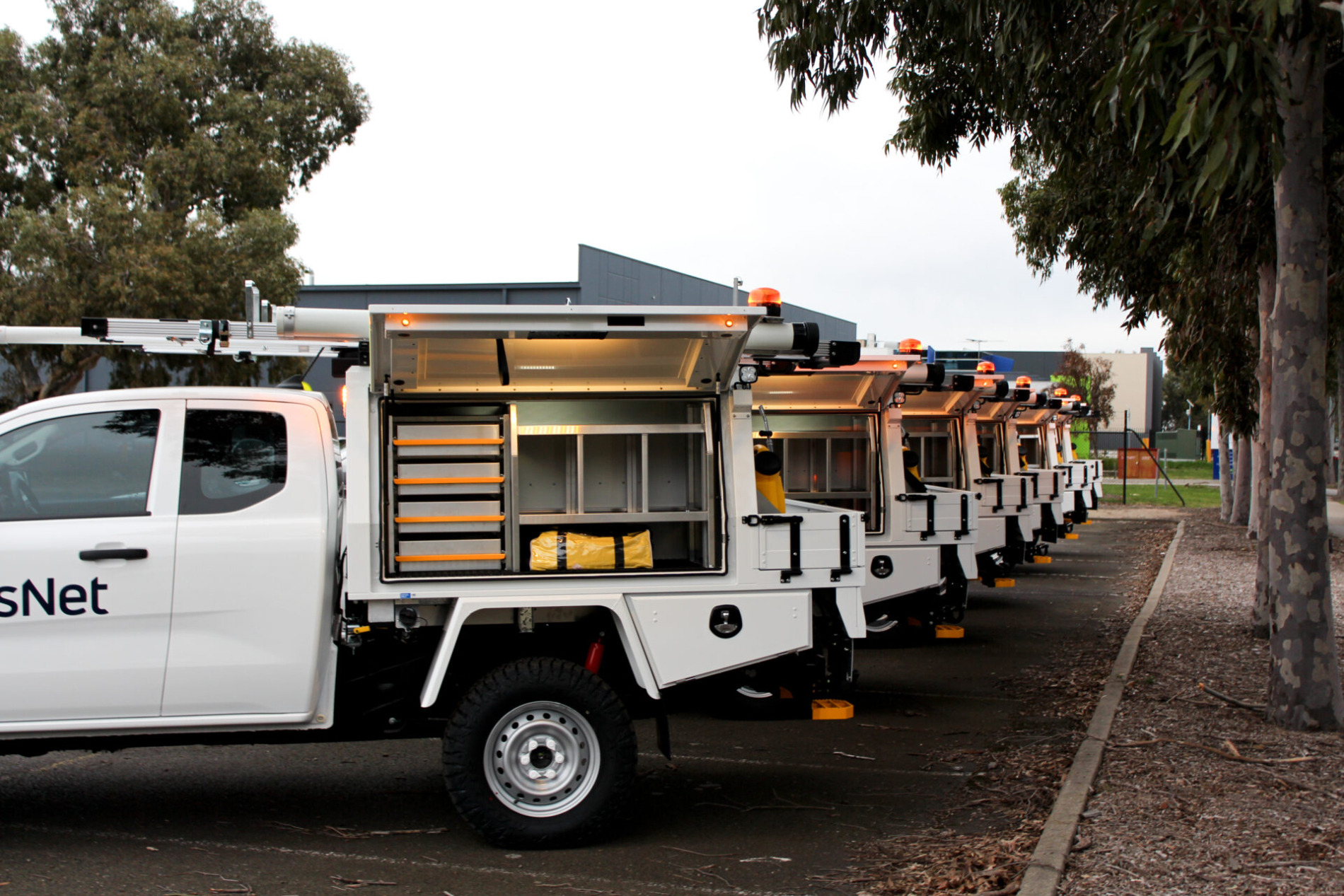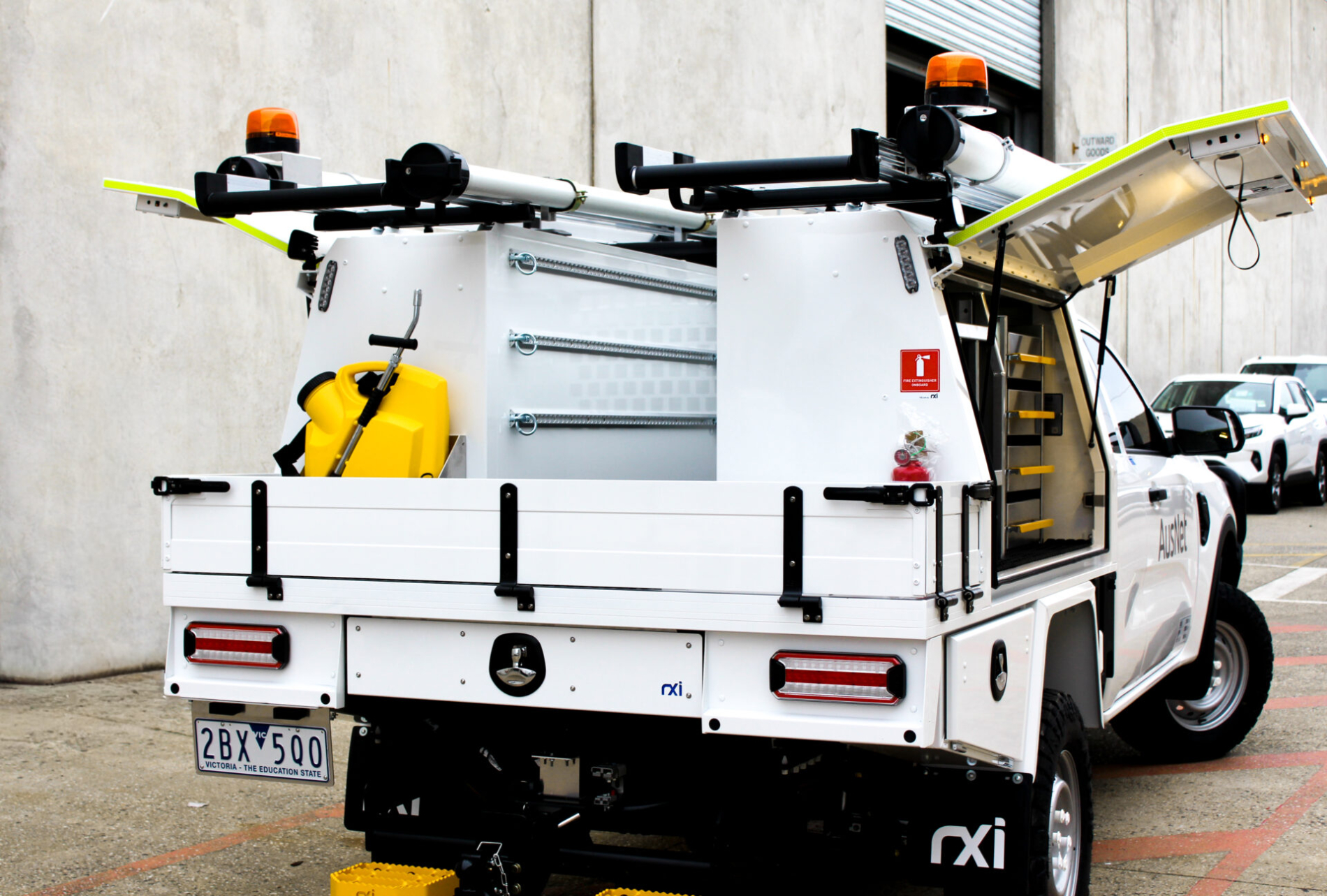 RXI delivered a fully customised Ford Ranger Extra Cab for AusNet’s Crew Leader Metro operations, designed for durability, compliance, and field efficiency. The build integrates a half-open Canopex body with powered gullwing doors, lithium-powered dual battery system, and a 2000W inverter to support critical tools and communications. With advanced storage solutions, reverse safety systems, ladder slides, work lights, and onboard utilities like a fridge and water tank, this vehicle provides AusNet crews with everything needed to operate safely and productively in demanding environments.