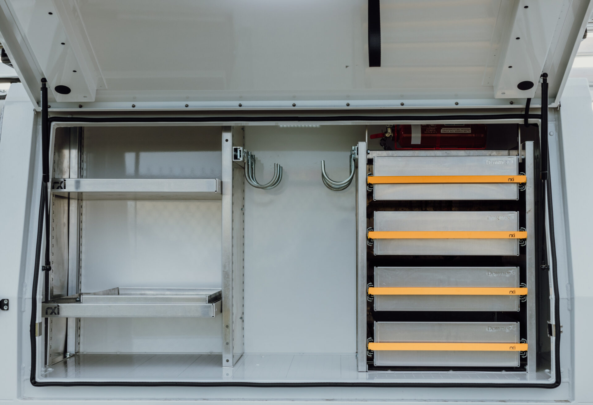 The call out vehicles built by RXI are used for as they are named. When power is out, or a pole is bought down by and accident or a weather event, these vehicles are usually first on the scene. The need to be versatile, sturdy and be fit for purpose, everything in in place and not flying all over the rear cabinet. These vehicles spend quite a lot of time off road, understandably they must be rigid in more ways than some.