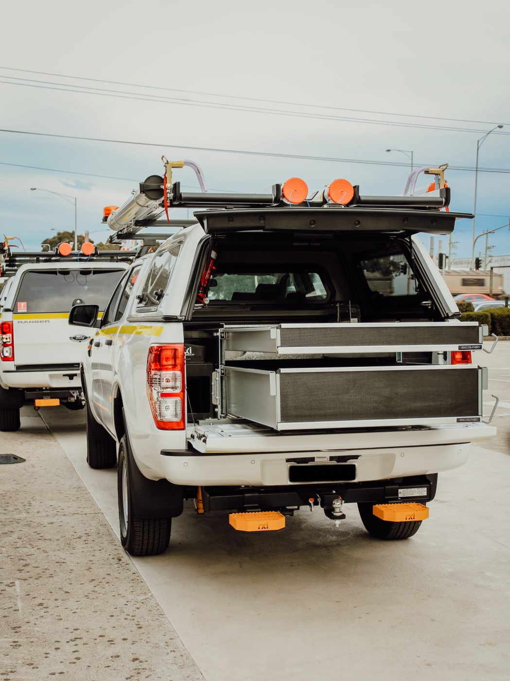After what RXI call “a meeting in the trenches” with field techs to gain a better understanding of what they required to do on a daily basis roadside. RXI developed a fitout that made the most used equipment easily and efficiently accessible while limiting the time required for the operator to be roadside while retrieving tools and equipment for his job. High visibility amber flashers also used to warn motorists. Rollout successfully completed on time and in full!