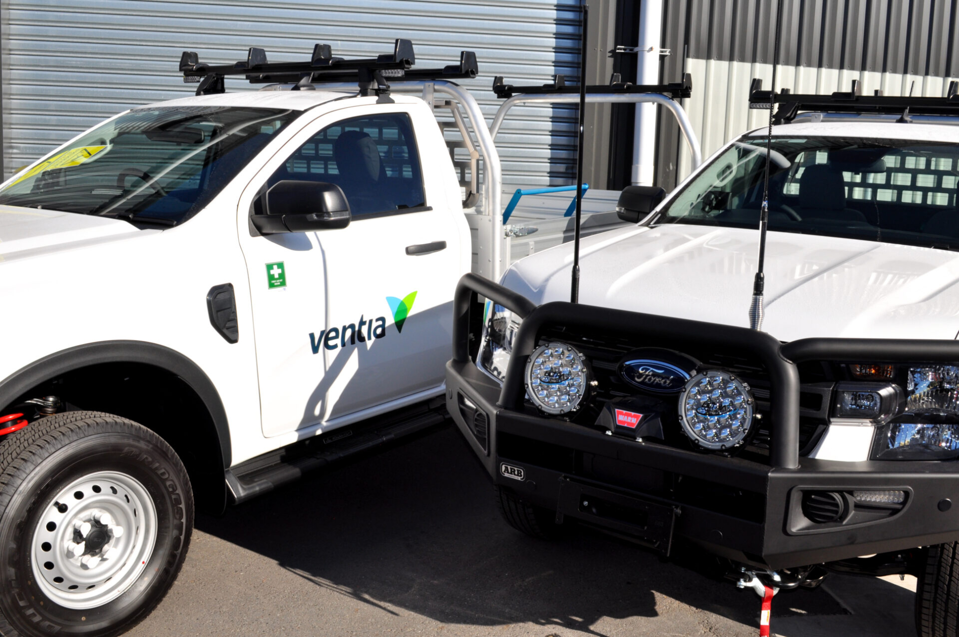 - Compliance upgrades including GVM upgrade to 3500kg, Ventia decals and safety markings, and protective Black Duck seat covers with rubber floor mats.