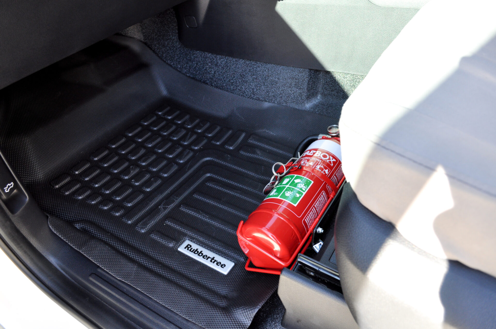 - Safety systems included ultrasonic reverse sensors, reversing alarm, hazard flashers, wheel nut indicators, 1.5kg ABE fire extinguisher, first aid kit, and rear heavy-duty tow step with yellow safety finish.