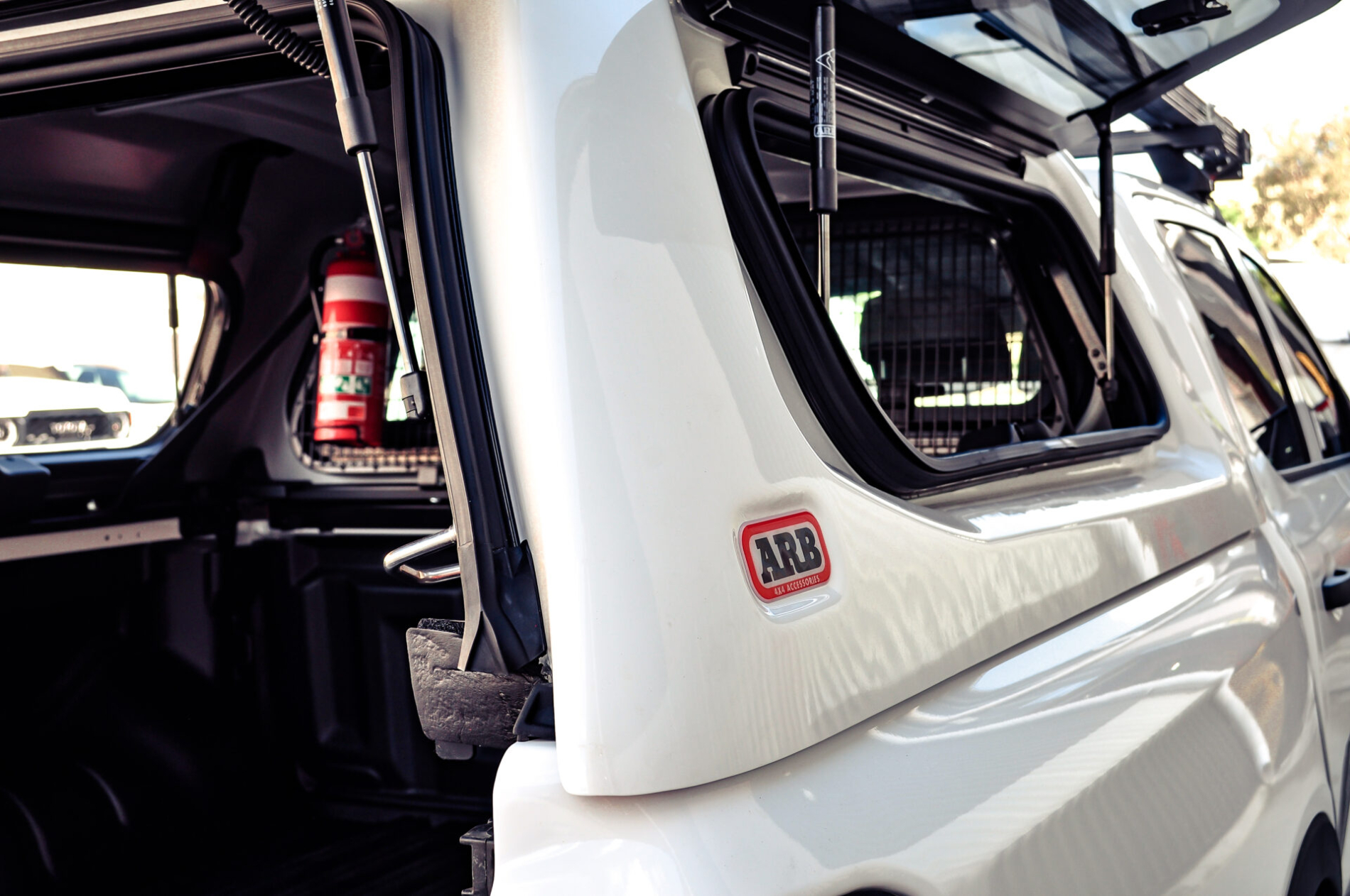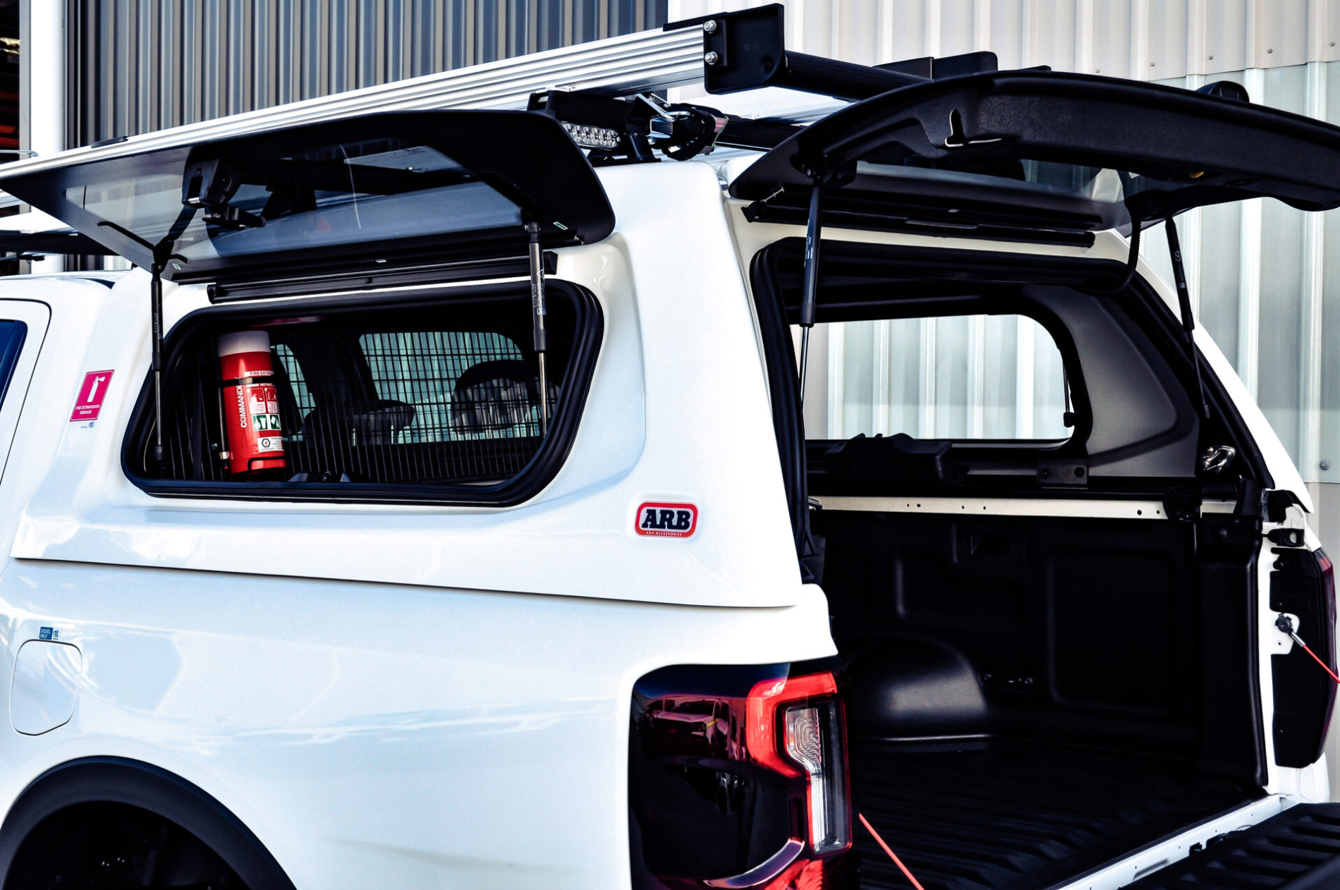 - Fully colour-coded ARB Ascent canopy with lift-up tinted side windows and support bars. Internal cargo barrier mesh for added tool security and separation.