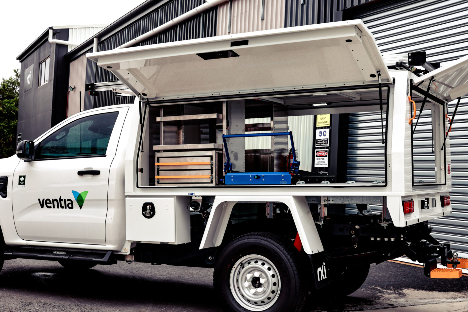 Ventia required a reliable field vehicle tailored for telecommunications operations, and RXI delivered a solution built for performance and compliance. Based on a Ford Ranger Single Cab, the custom build features a fully enclosed Canopex service body with integrated storage, electrical upgrades, and essential safety systems. Designed for daily field use in harsh conditions, these fit-out’s provide rugged functionality while supporting our clients operational efficiency and fleet standards consistently Nationwide.